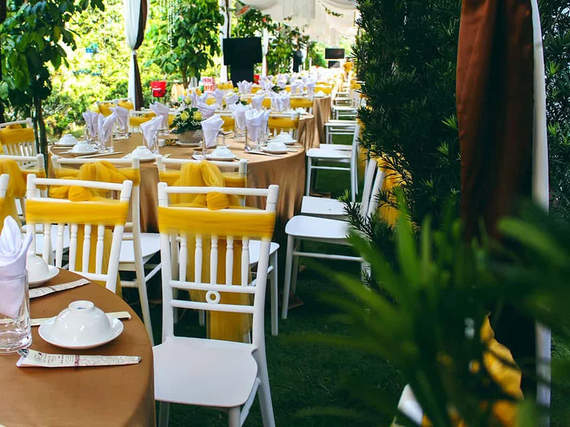Ngoài ra, Đất Tiên Sa còn có đội ngũ nhân sự thực hiện trang trí không gian theo tính chất của mỗi sự kiện cũng như yêu cầu của khách hàng. Việc bày trí bàn ghế, setup không gian đãi tiệc cũng như dựng rạp hay kết nối âm thanh, ánh sáng… đều được Đất Tiên Sa chuẩn bị tươm tất từ A – Z để đảm bảo mang đến trải nghiệm cảm xúc, sinh động nhất thượng khách.