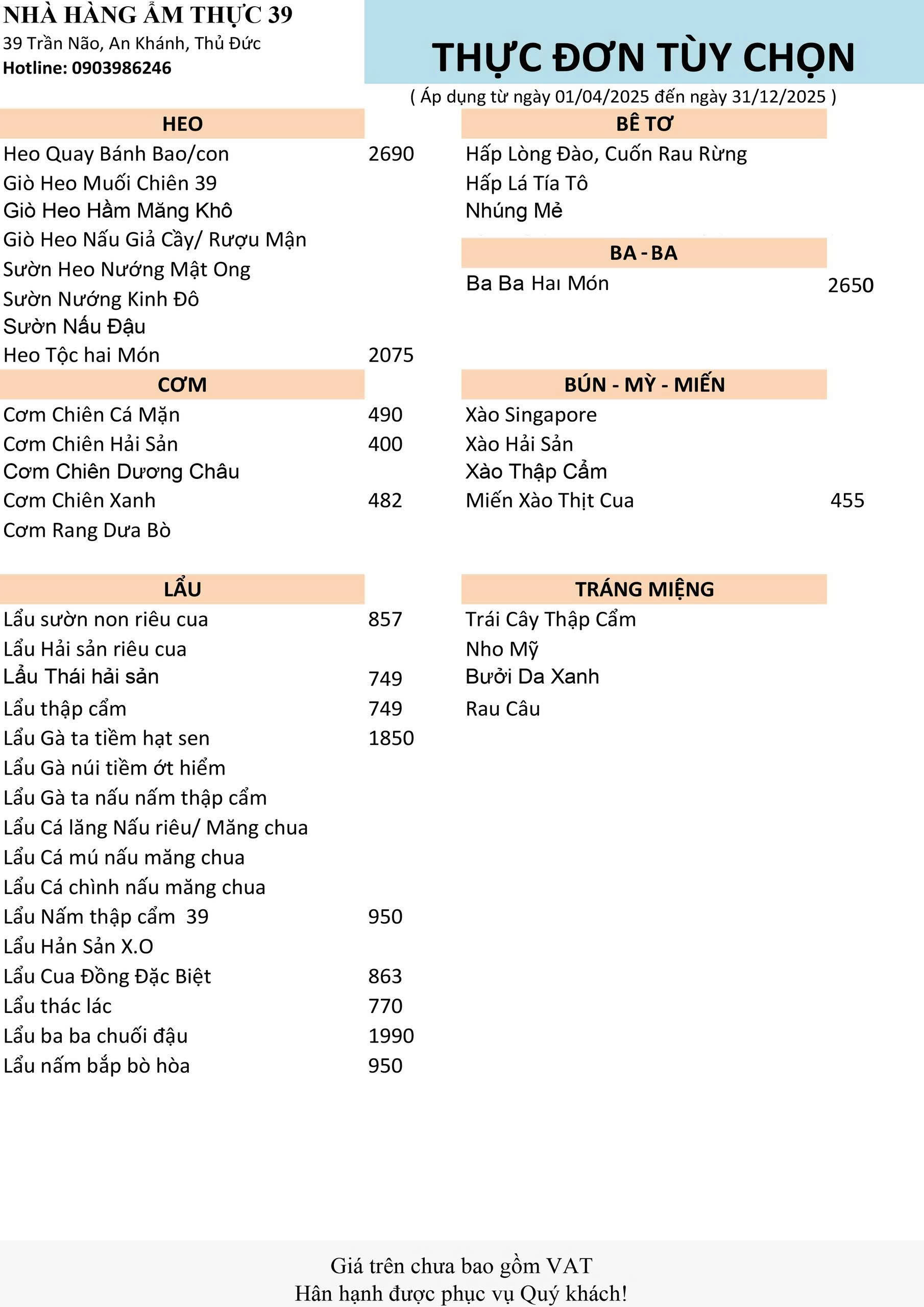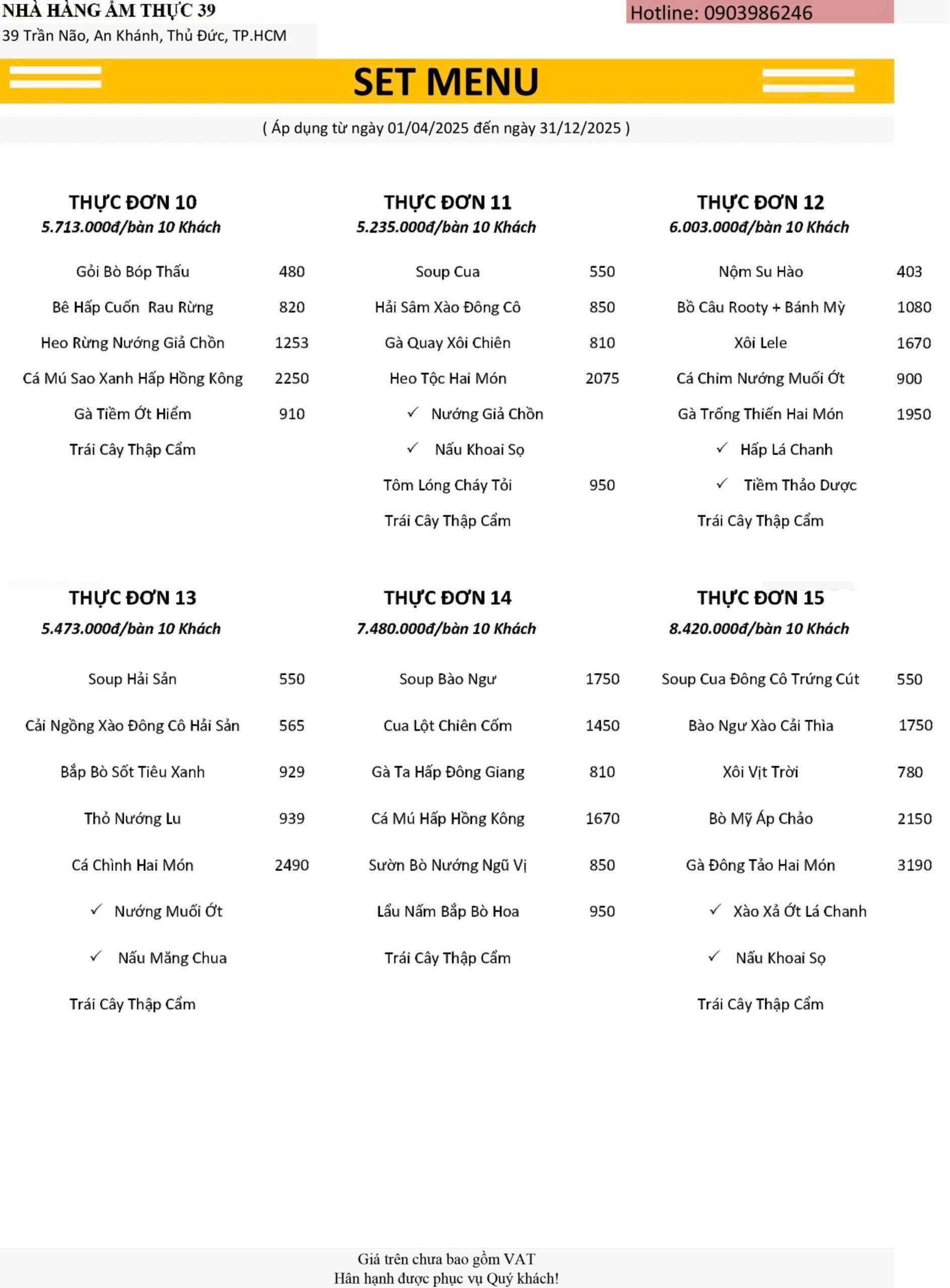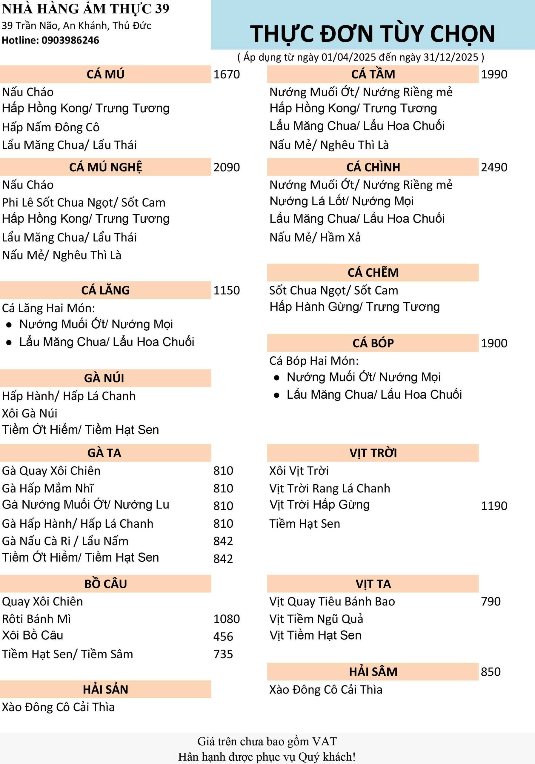 Thực đơn phong phú và đa dạng với các món ăn được chế biến từ các loại hải sản tươi sống và được lựa chọn kỹ lưỡng. Với đội ngũ đầu bếp chuyên nghiệp và nhiều năm kinh nghiệm, chắc chắn sẽ làm hài lòng thưc khách.